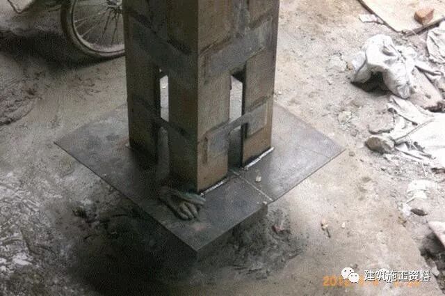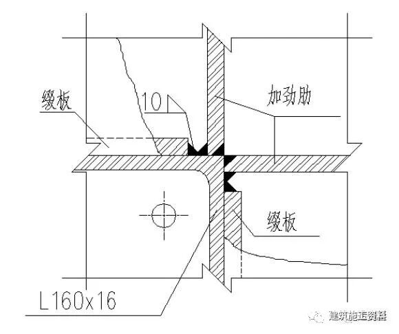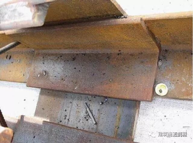 ②格构柱间对接焊接时接头应错开,保证同一截面的角钢接头不超过 50%,相邻角钢错开位置不小于 50cm。角钢接头在焊缝位置角钢内侧采用同材料短角钢进行补强。