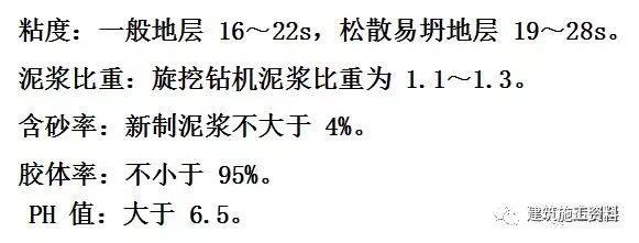 本工程泥浆采用泥浆搅拌机制作,存放于泥浆箱内。用好泥浆是保障成孔顺利,保持桩孔不坍、不缩,保证混凝土灌注质量的重要环节。施工中配备专门技术人员根据地层特点管理好施工泥浆的质量。选用膨润土、CMC、PHP、纯碱等配制优质泥浆。根据地层情况及时调整泥浆性能,泥浆性能指标如下: