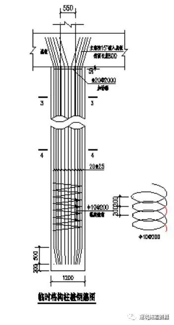 (1)钢筋笼采用整体制作整体吊装,桩身主筋采用 20 根 HRB400Φ25mm,桩长 15m,加劲箍筋采用 HRB400Φ20@2000,螺旋箍筋采用 HPB300φ10,加密区箍筋的间距 100mm,非加密区箍筋的间距为 200mm,混凝土保护层厚度为70mm。