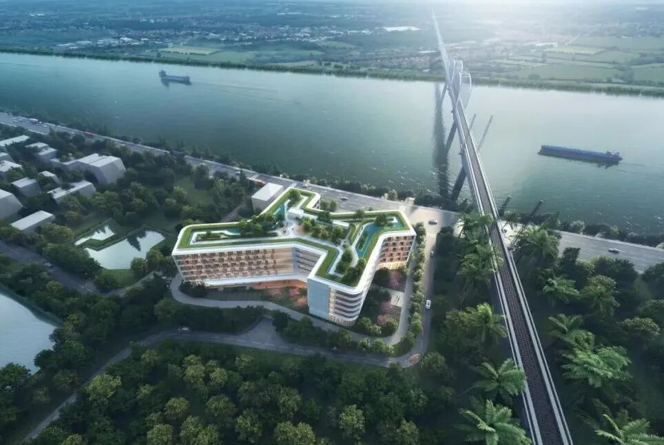 随着我国人口老龄化加速、“银发族”规模持续扩大,多样化、个性化的养老需求催生养老模式的不断进化。在国家一系列积极切实政策和市场需求的双重驱动下,鹤山市澳乐康养院设计项目应运而生,项目以“夕阳江畔,归园田居”为核心理念,开启了一场宜居养老新探索。 ▲ 凭依山峦,面朝大江