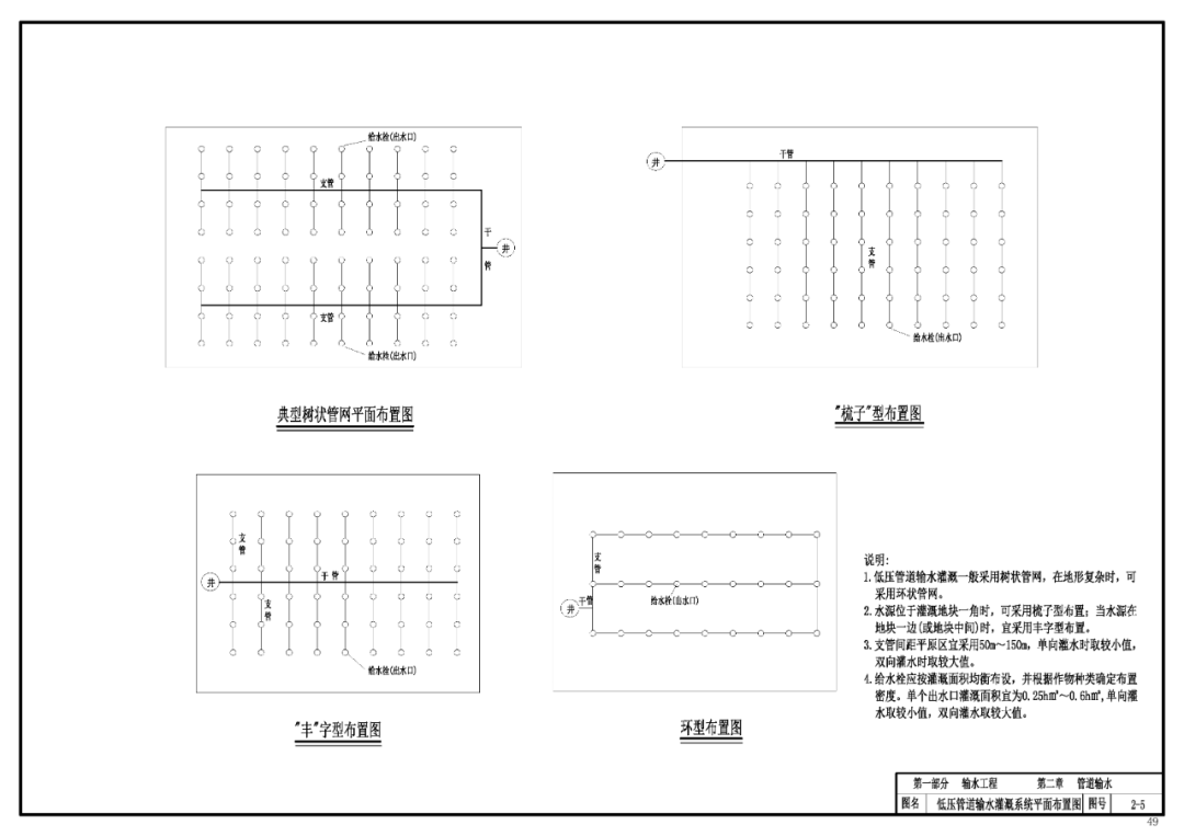 (1)根据项目区具体情况确定输水管道的材质及具体形式